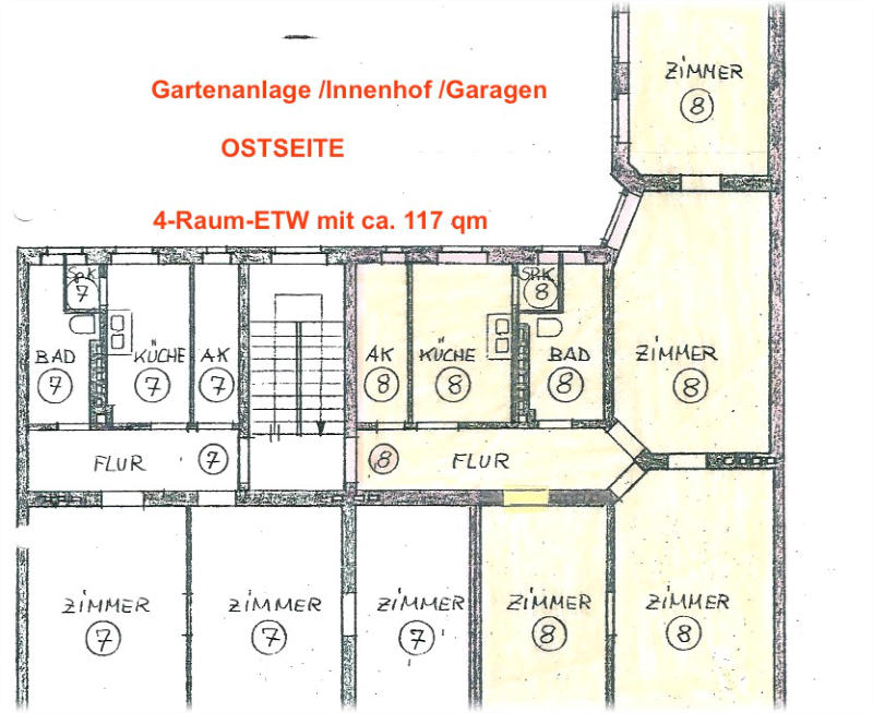 Durchgangszimmer gibt es nur im hinteren Teil der Wohnung (seitl. Anbau).